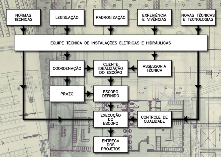 Atuamos no desenvolvimento de projetos de instalações elétricas e hidráulicas, assessoria técnica em instalações para edifícios residenciais, comerciais e industriais, bem como em gerenciamento, fiscalização e acompanhamento de obras. Procedemos à aprovação junto aos órgãos competentes para todos os nossos projetos.